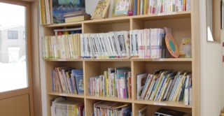 ③絵本コーナー 好きな絵本を親子で借りて家庭でも楽しんでいます。大人向けの育児の本も用意してあります。